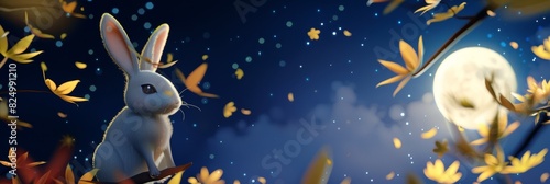 Mid Autumn festival 3d illustration. rabbits in night sky
