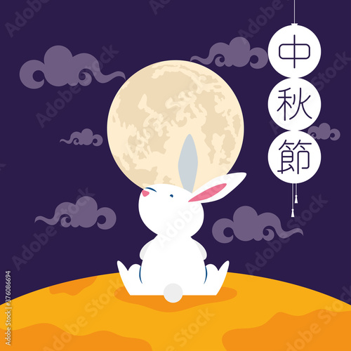 mid autumn festival poster with rabbit and moon