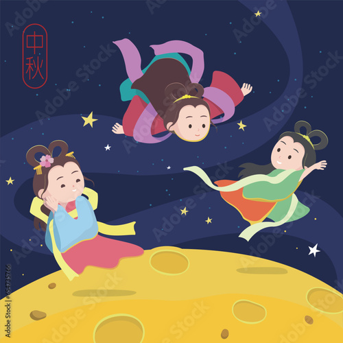 woman, fairy, girl, goddess, china, cartoon, chinese, festival, moon, mascot, mythology, comic, fly, character, culture, illustration, draw, beautiful, fall, asia, custom, traditional, legend, tale, ancient, lady, crescent, milky way, star, night, tanabata, sky, silver, astronomy