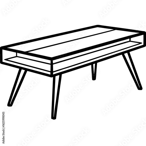 table, furniture, wood, wooden, chair, bench, interior, object, brown, design, desk, seat, home, isolated, stool, style, empty, room, decoration, single, vintage, old, elegance, nobody, contemporary, coffee table, line art, minimalist, interior design, home decor, black-and-white, wood texture, hand-drawn, living room