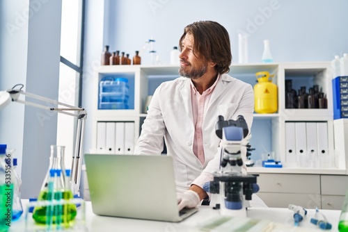 beard, man, male, adult, elderly, mature, person, photogenic, senior, happy, confident, smile, smiling, science, research, medicine, scientist, experiment, technology, medicals, professional, microscope, chemist, biology, analysis, work, men at work, working, tube, test, laptop, computer, cyberspace, online, table, sitting, device, contraption, clinic, center, hospital, room, indoor, indoor, laboratory, laboratory, pharmacy, chemistry