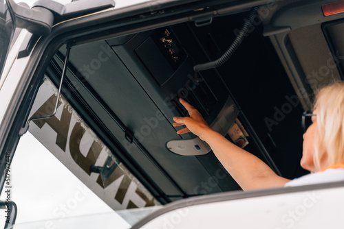truck, woman, driver, female, truck driver, lorry, drive, transport, road, profession, trailer, happy, men at work, portrait, cabin, industry, cargo, semi, business, service, city, transportation, driving, wheel, job, caterer, professional, person, people, delivery, highway, vest, mechanic, radio, woman, inspection, warehouse, car, industrial, occupation, shipment, helmet, mature woman, caucasian