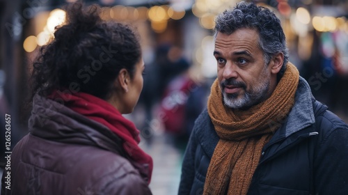 communication, dialogue, conversation, urban, diversity, cultural, social, interaction, winter, city, professional, mature, authentic, connection, understanding, discussion, human relationships