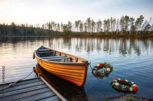 estonia, lakeshore, wooden boat, evening light, water reflection, birch, summer flowers, tranquil scene, nature, calm water, peaceful, no people, scenic, northern europe, traditional, seasonal, quiet, serene, natural beauty, boating, rural, landscape, holiday, celebration, summer, folklore