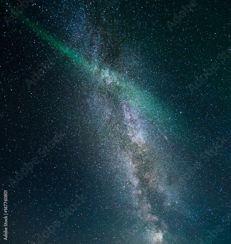 Milchstrasse über Island mit einem schmalen Streifen Nordlicht