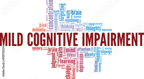 Mild Cognitive Impairment MCI word cloud conceptual design isolated on white background.