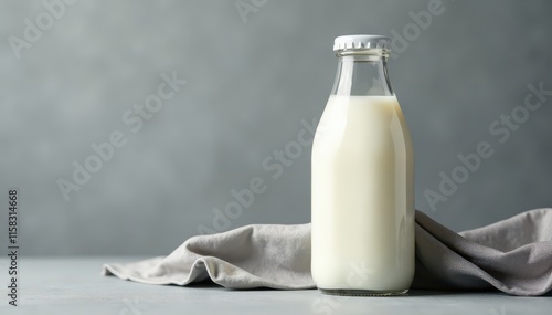 Milk, bottle, fabric, gray backdrop, soft focus, linen, design