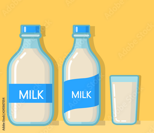 Milk bottle glass.Dairy product. Glass cup.Healthy eating.Flat vector.