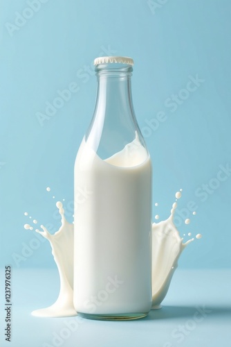 Milk Bottle Splash: A Serene Glass Bottle of Milk with Dynamic Splash