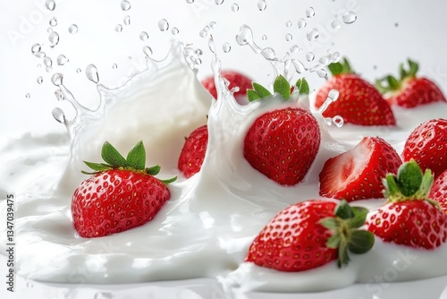 milk, yogurt, splash, strawberry, white, fresh, dairy, fruit, liquid, drink, healthy, breakfast, cream, freshness, nourishment, smoothie, texture, refreshing, juicy, natural, organic, vibrant, delicious, summer, wholesome