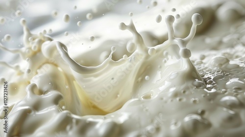 Milk splash with droplets in motion and creamy texture