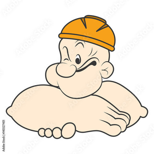 Miner with crossed arms. Miner wearing hard hat at coal mine. Vector flat design illustration isolated on background.