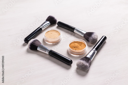 Mineral face powder and brush. Eco-friendly and organic beauty products