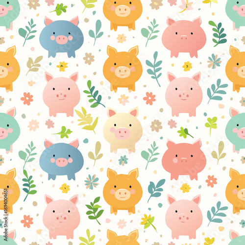 Mini Pig harmonious pastel vector pattern ideal for seamless textures.