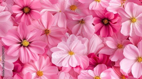 Mini pink cosmos flowers pattern, intricate design of delicate blossoms, vibrant and cheerful, perfect for textiles and home decor