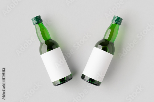 Miniature spirits, liquor bottle mockup. Green glass with a blank label.