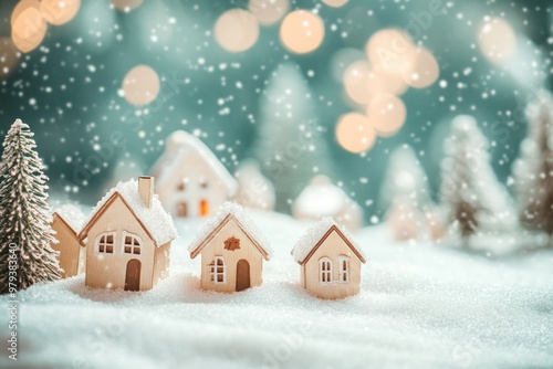 miniature, wooden, house, snow, covered, background, blurry, light, falling, christmas, winter, festive, cosy, home, holiday, celebration, season, december, jan, decoration, ornament, village, model, tiny, cute, charming, rustic, simple, warm, glow, sparkle, magic, fairy tale, dream, peaceful, tranquil