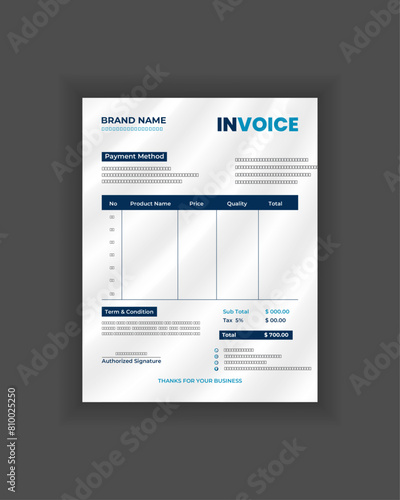 Minimal Corporate Business Invoice Design Template and Bill Memo. Creative Business Invoice and Business stationery Design Payment Agreement Design.
