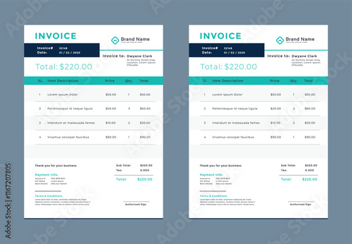 Minimal Corporate Business Invoice design template vector illustration bill form price invoice. Creative invoice template vector. business stationery design payment agreement design template