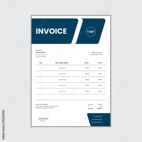 Minimal Corporate Business Invoice design template vector illustration bill form price invoice. Creative invoice template vector. business stationery design payment agreement design template