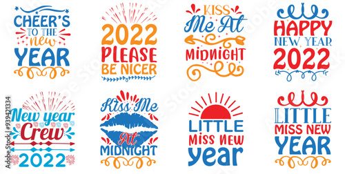 Minimal Happy New Year Typographic Emblems, Quotes Set Vector Illustration for Poster, Banner, Infographic