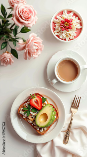 minimal, breakfast, healthy, avocado, flower, plate, green