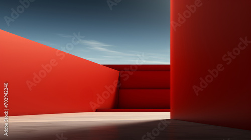 Minimal image of a red wall in bright lights with blue sky. Visual Harmony