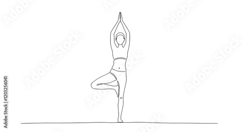Minimal Line Drawing of Woman in Tree Pose Practicing Yoga