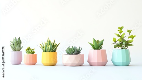 Minimal, modern, and colorful plant pots with geometric shapes in soft pastel hues. Perfect for home decor, product displays, and digital graphics
