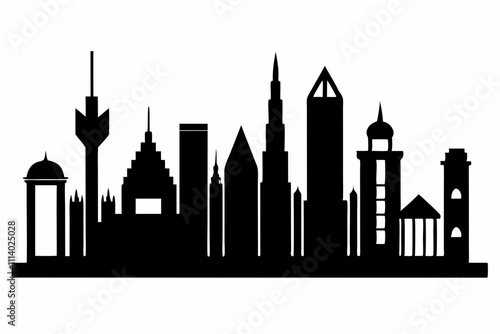 black-and-white, cut-out, horizontal, no people, outline, simplicity, skyscraper, sparse, texas, us, financial district, tower, binnenstad, famous place, illustration, building exterior, built structure, outdoors, vector, city, city landscape, white color, monochrome, historical building, panoramic, symbol, city landscape, white background, architecture, american culture, international landmark, local landmark