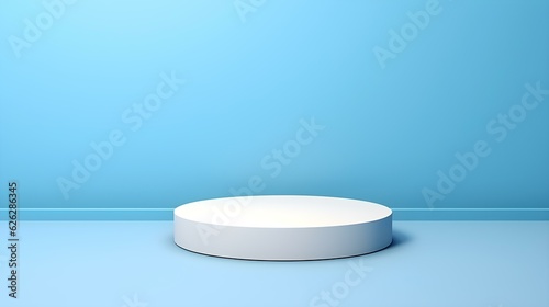 Minimal Studio Background in sky blue Colors. Modern Podium for Product Presentation