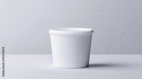 Minimal White Container With Lid Isolated On White Table And Textured Background