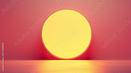 Minimalist 3D Room with Yellow Circle Light and Pink Wall