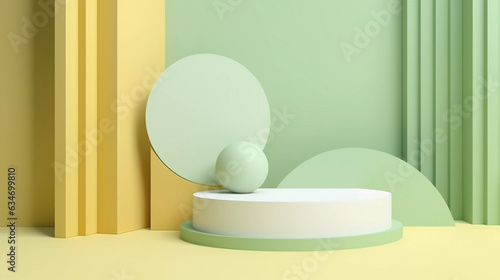 minimalist abstract 3D geometric podium display for product presentation branding and packaging presentation with pastel scene background