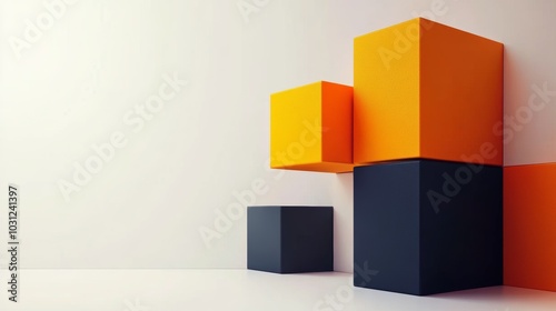 Minimalist Abstract Geometric Shapes Orange Black Cubes on White Background