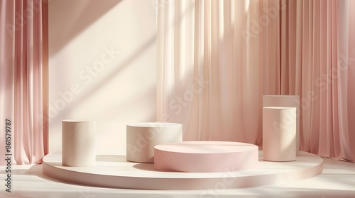 abstract, modern, minimal, product, presentation, geometric, cylinder, pedestal, pink, cream, beige, display, stage, simple, clean, elegant, contemporary, conceptual, fashion, decor, design, studio, still life, interior