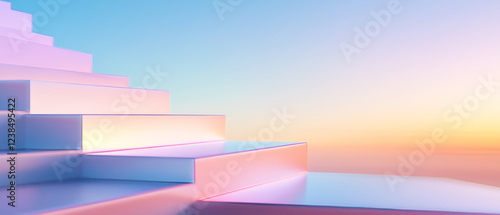 Minimalist abstract staircase with pastel gradient colors and soft lighting
