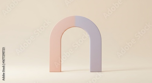 Minimalist arch-shaped object in pastel pink and purple against a soft cream background, creating a clean and modern aesthetic.
