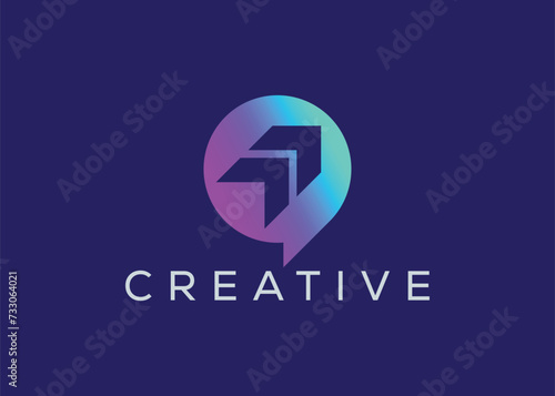 Minimalist Arrow chat logo design vector template. Creative modern chat logo