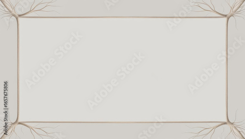 Minimalist Background Frame with Root and Branch Design, Neutral Color Palette, Perfect for Text Overlay