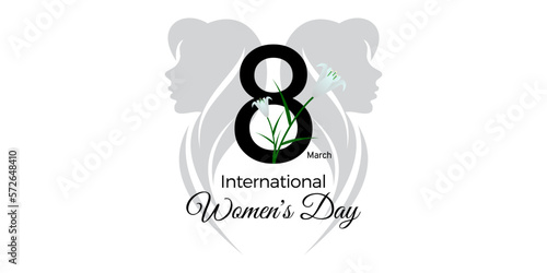 minimalist background with the theme of international women's day, march 8th with floral ornament, silhouette of 2 women, lovely and cute.