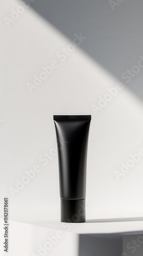 beauty, minimalist, studio, unbranded, foundation, cream, tube, skincare, design, modern, cosmetic, black, sleek, cardboard box, product, container, clean, elegant, isolated, shadow, light, shine, glossy, fashion, make-up, health, care, luxury, smooth, background, neutral, professional, matte, branding, innovation, aesthetic, chic, contemporary, timeless, sophisticated, marketing, presentation