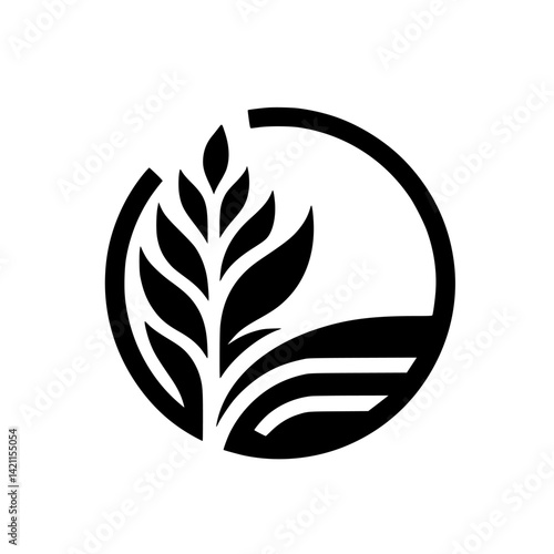 vector, wheat, agriculture, logotype, symbol, nature, plant, farm, landscape, circular, abstract, graphic, illustration, modern, organic, minimal, simple, black-and-white, emblem, branding, design, environmentally friendly, harvest, food, grain