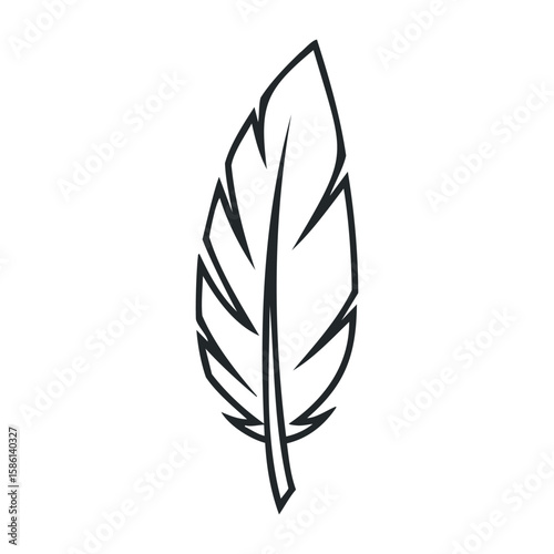 Minimalist black and white feather outline illustration with simple design elements. Outline vector illustration