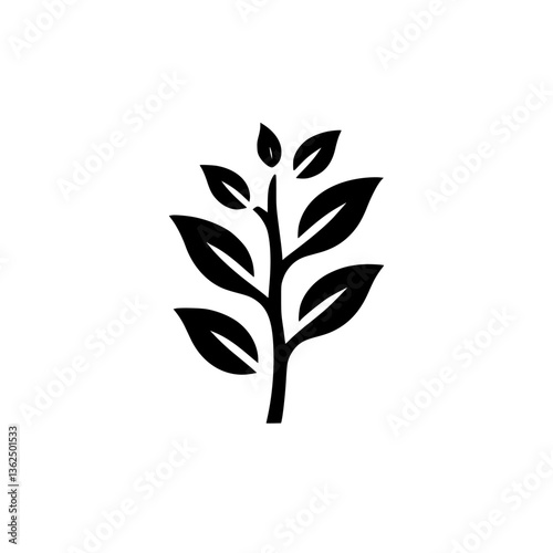 vector, plant, leaf, leaf, tree branch, stem, germinating, growth, nature, minimalist, simple, black, white, isolated, symbol, icon, design, graphic, illustration, organic, fresh, environment, ecology, renewal, natural