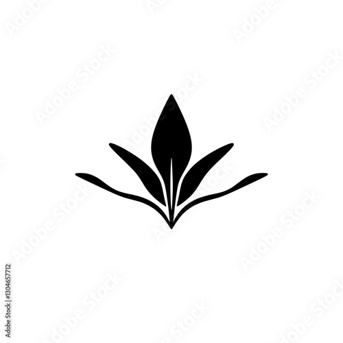 Minimalist Black and White Leaf Illustration: Geometric Plant on White Background, Silhouette, Logo Style.