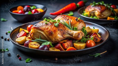 Minimalist Black Plate: Roasted Chicken & Seasonal Vegetables