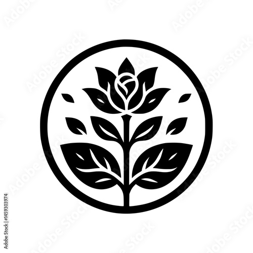 Minimalist Black Rose Icon in a Circle, Botanical Logo