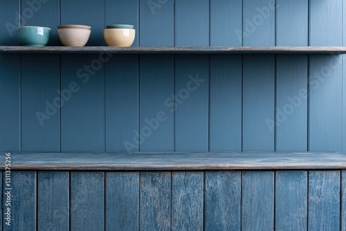shelf, blue, minimalist, kitchen, bowl, decor, interior, design, wood, clean, elegance, simplicity, space, storage, home, aesthetic, modern, style, colours, arrangement, harmony, cosy, functional, contemporary, wooden, background, texture, calmness, light, soft, unique, artistic, vibrant, inviting