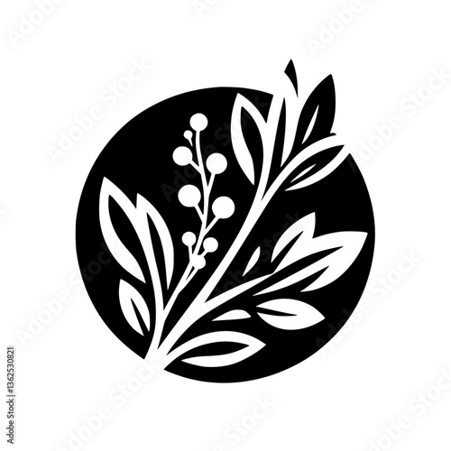 vector, botanical, minimalist, illustration, plant, leaf, berry, stem, silhouette, black, white, circle, graphic, design, nature, organic, modern, simple, abstract, symmetry, texture, art, composition, emblem, logotype